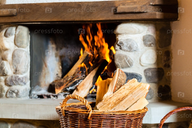 Камин в альпийской хижине охотника