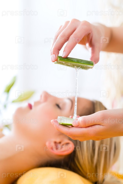 Женщина в спа-салоне на процедуре с алоэ вера