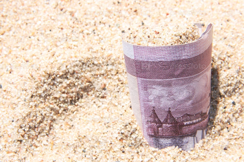 Пятисотрублевая купюра в песке