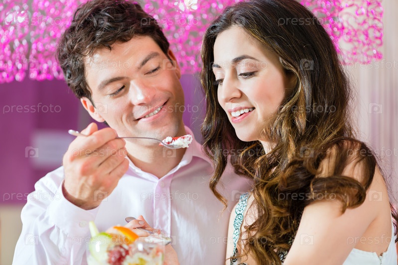 Молодая пара проводит время в кафе