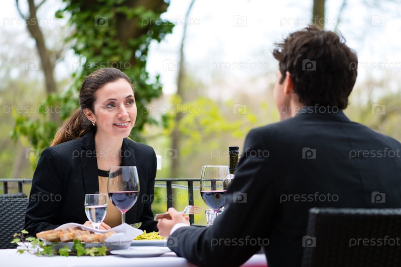 Деловые люди обедают в ресторане