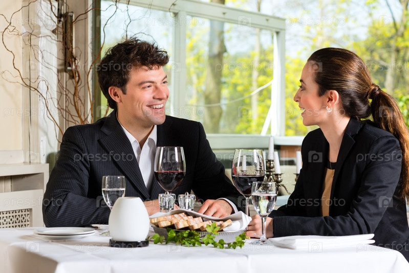 Деловые люди обедают в ресторане