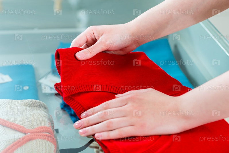 Молодая женщина делает покупки в магазине одежды