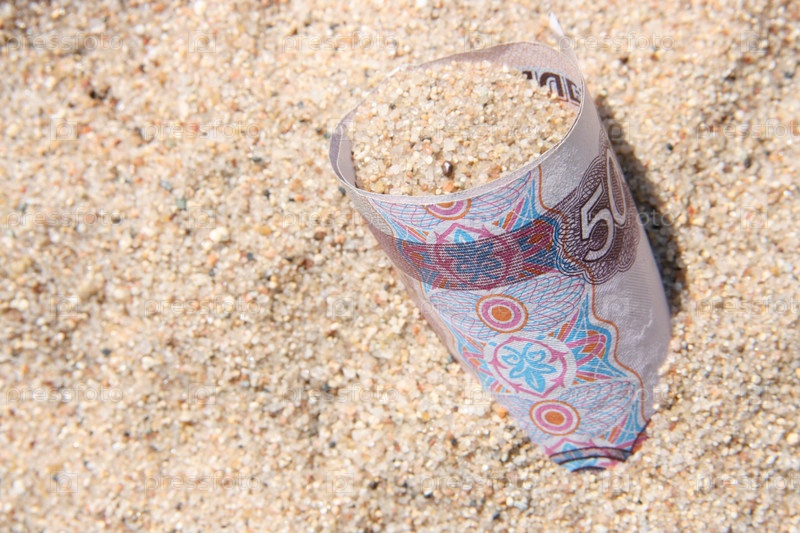 Пятисотрублевая купюра в песке