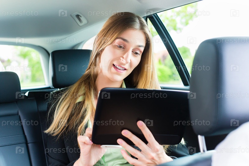 Женщина едет в такси
