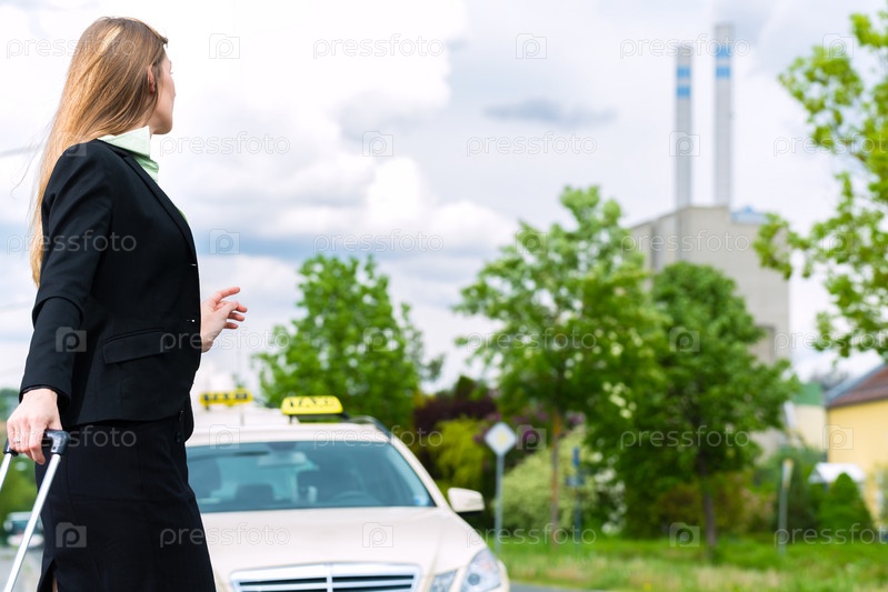 Молодая деловая женщина останавливает такси