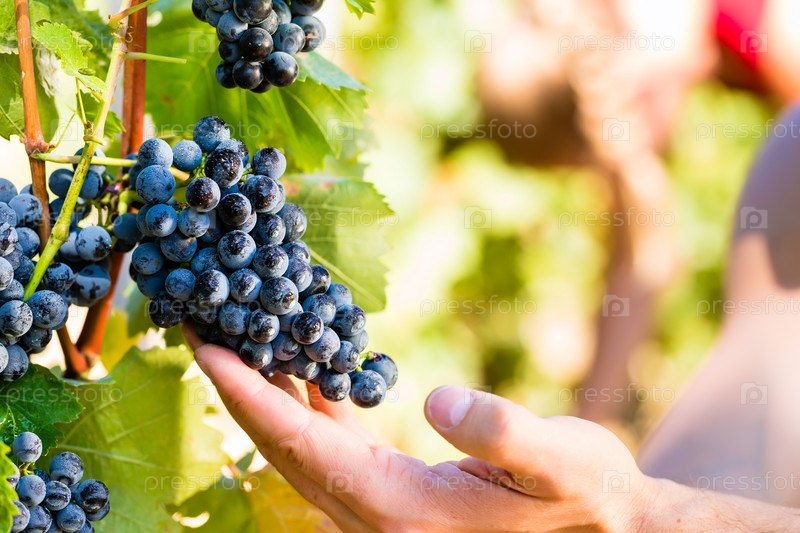 Винодел собирает виноград в лучах солнца