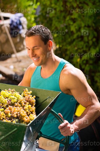Мужчина с машиной для сбора винограда