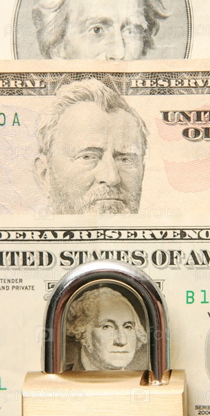 Навесной замок на фоне долларов