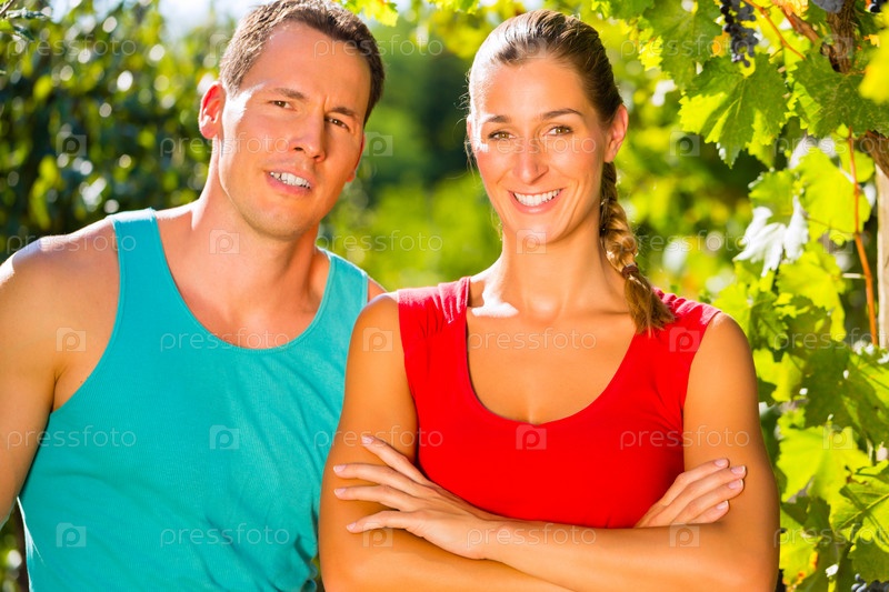 Мужчина и женщина в винограднике