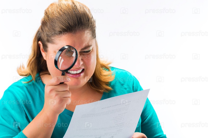 Женщина смотрит через увеличительное стекло