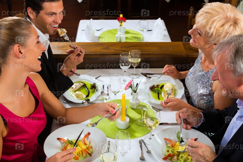 Семья со взрослыми детьми ресторане
