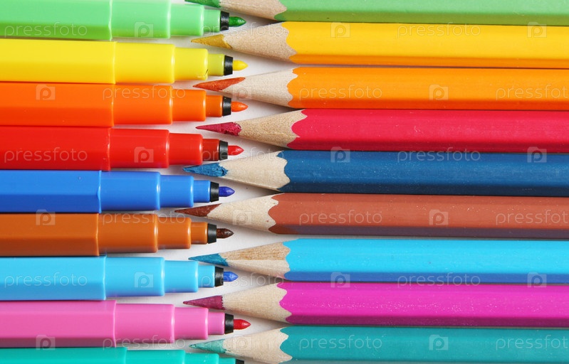 Набор цветных карандашей и фломастеров