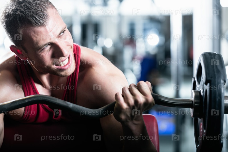 Культурист со штангой в тренажерном зале