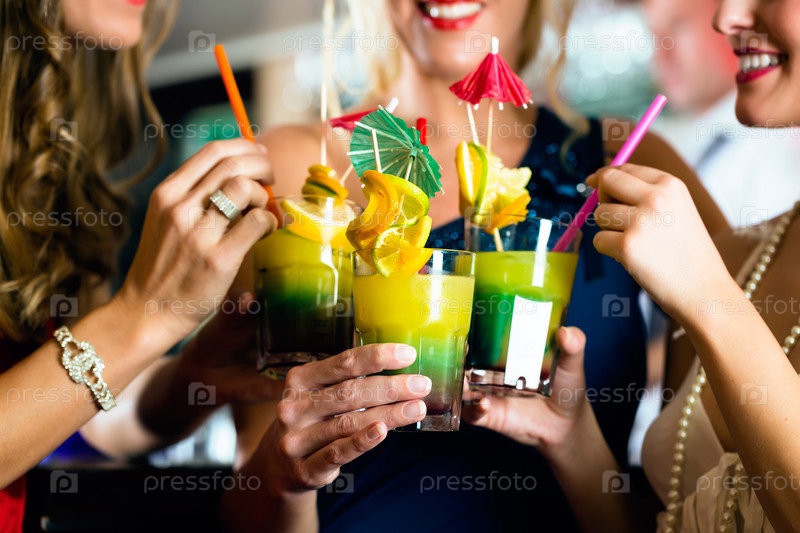 Веселые молодые женщины в баре с коктейлями