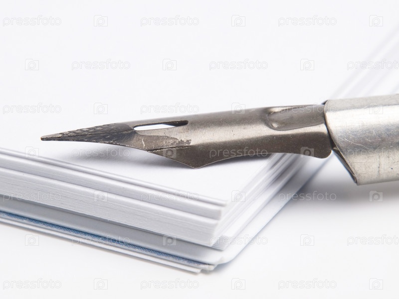 Старая перьевая ручка на стопке бумаги