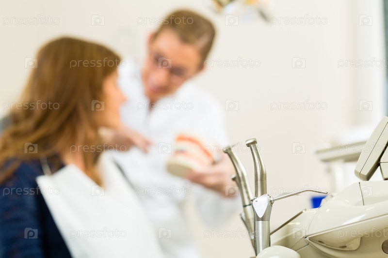 Стоматологические инструменты с пациенткой на фоне