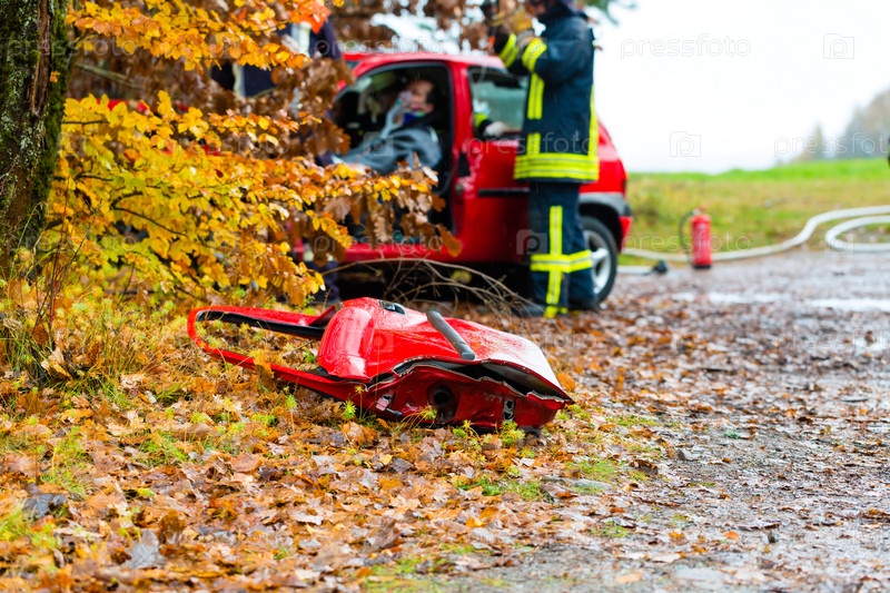 Несчастный случай. Пожарная служба спасает жертву автомобильной аварии