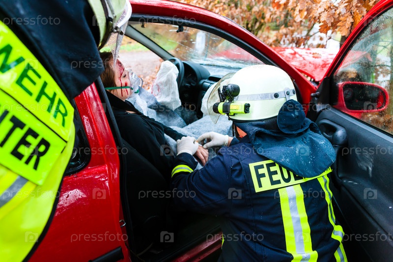 Несчастный случай - пожарная служба спасает жертву ДТП
