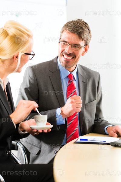 Бизнесмены в офисе пьют кофе