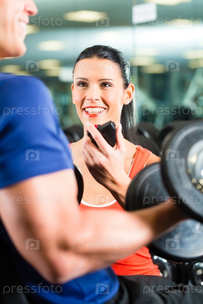 Персональный тренер в тренажерном зале с гантелями