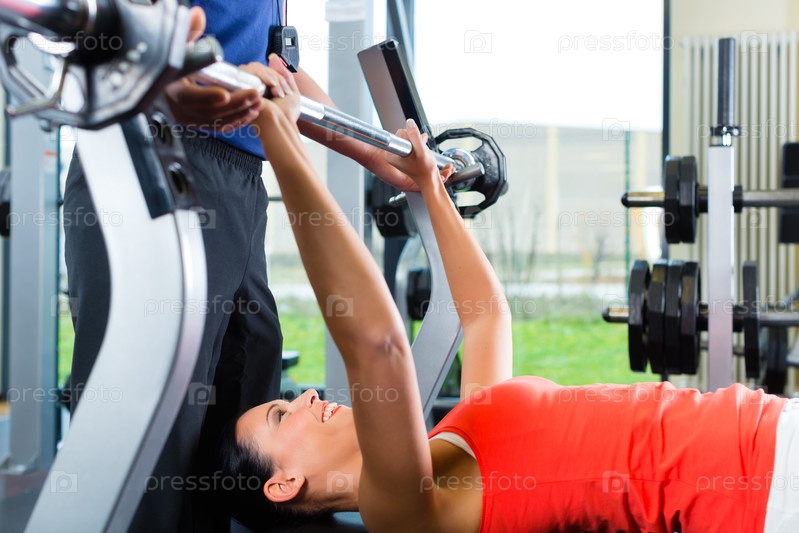 Женщина и личный тренер в тренажерном зале