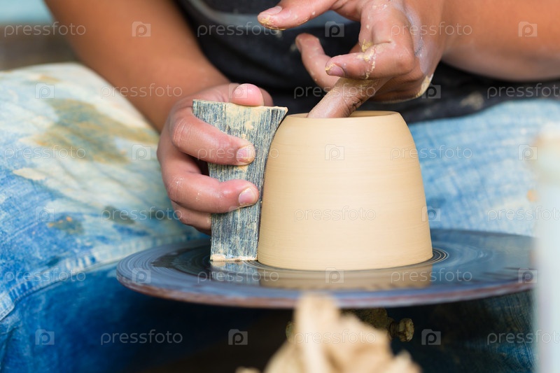 Создание глиняной чаши на гончарном колесе