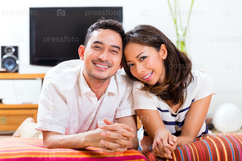 Азиатская пара дома в гостиной