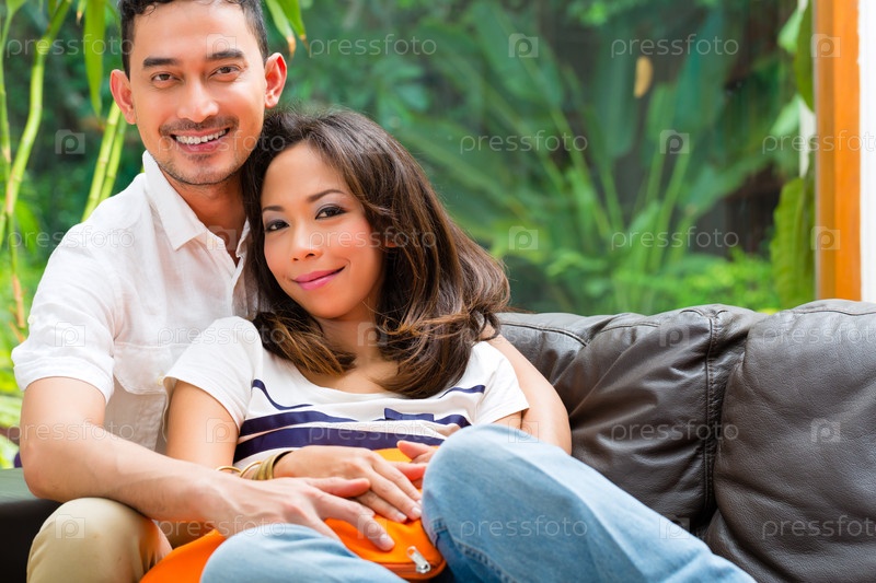 Азиатская пара на диване