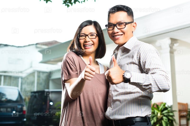 Азиатская пара на фоне дома