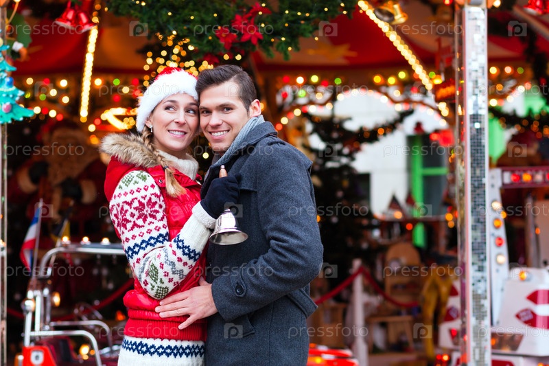 Пара на традиционном рождественском рынке