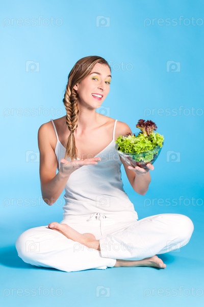 Здоровое питание. Молодая женщина с салатом