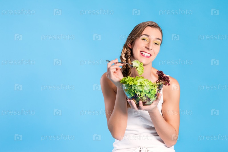 Здоровое питание. Молодая женщина с салатом