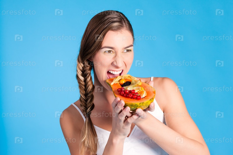 Здоровое питание - молодая женщина с фруктами