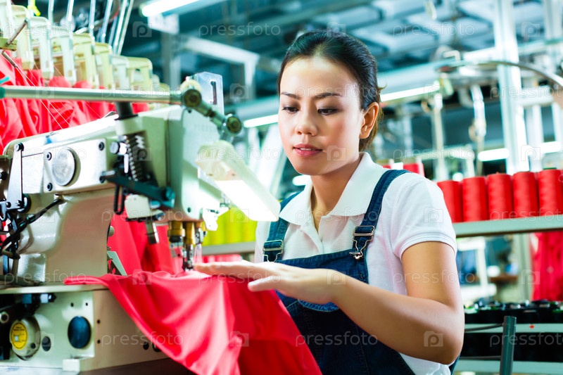 Швея-китаянка на текстильной фабрике
