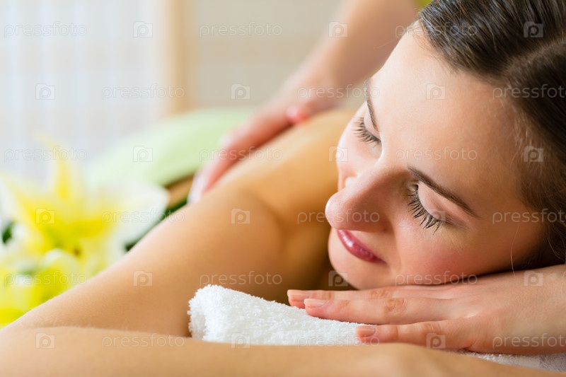 Женщина на оздоровительном массаже в спа-салоне