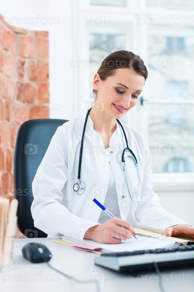 Женщина-врач работает с документами