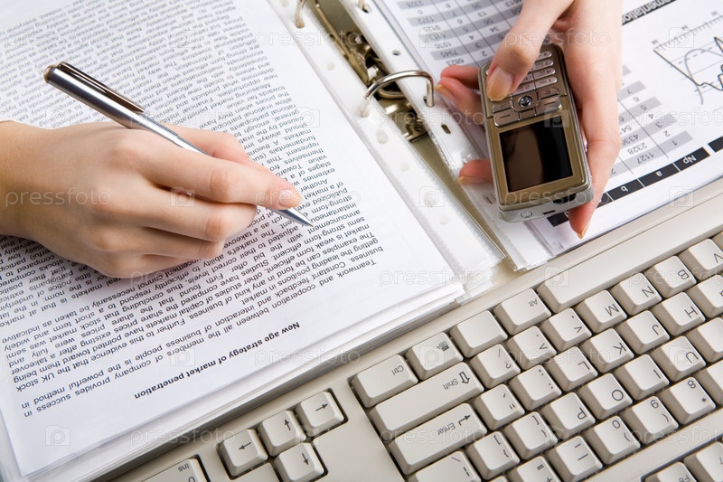 Фото рук, держащих телефон и перо над документами