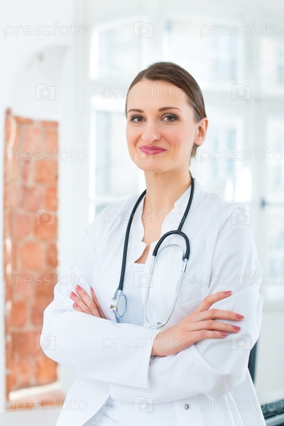 Портрет молодой женщины-врача в клинике