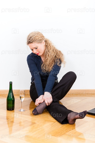 Молодая женщина с вином у себя дома