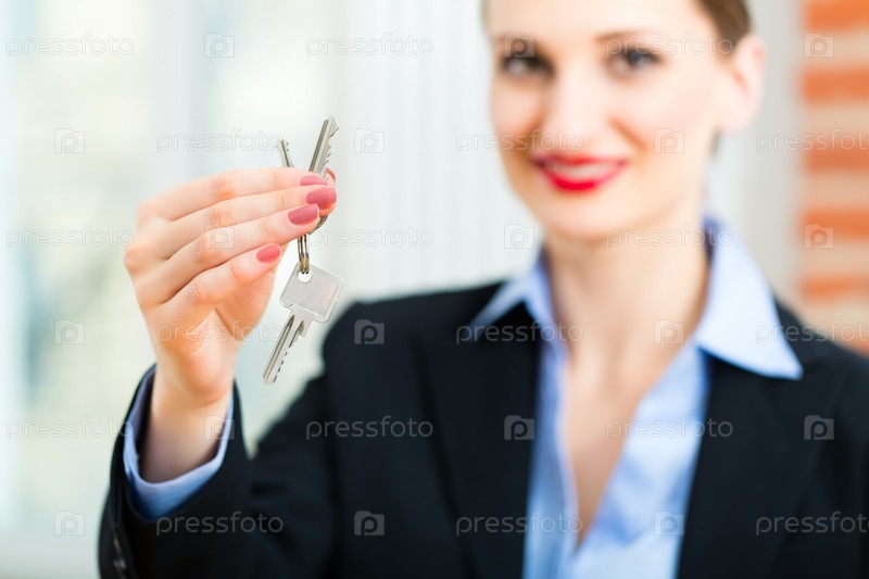 Молодая женщина-риэлтор с ключами от квартиры