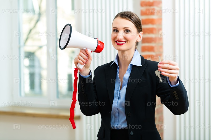 Молодая женщина-риэлтор с ключами от квартиры