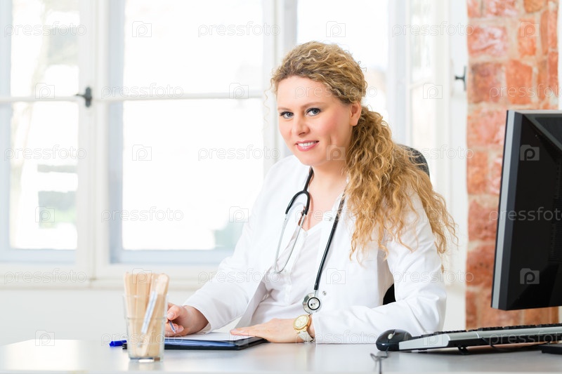 Женщина-доктор с документами в своем кабинете