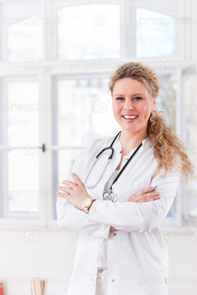 Портрет молодой женщины-доктора в клинике