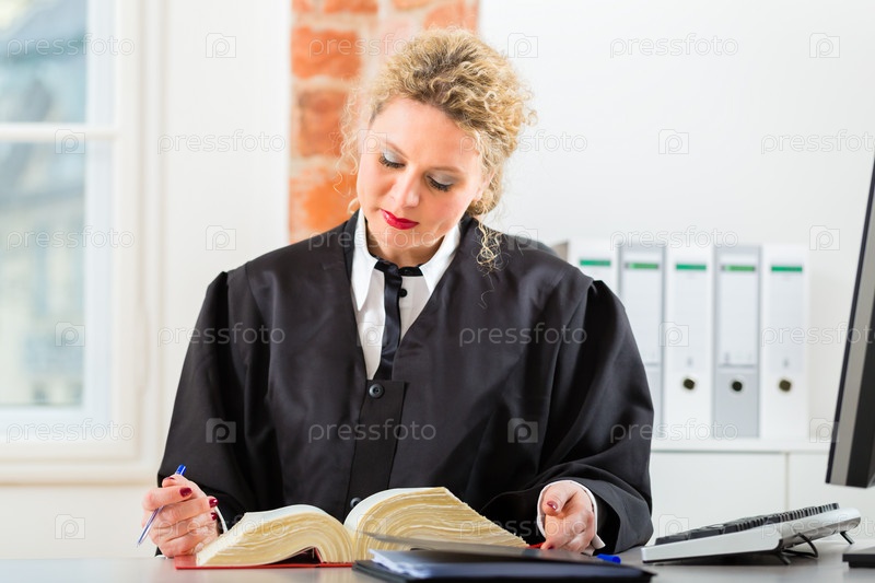 Юрист в офисе с книгой законов
