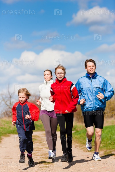 Семья на пробежке на открытом воздухе