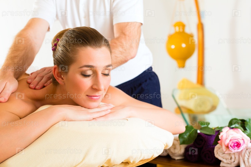 Женщина на процедуре оздоровительного массажа в спа-салоне
