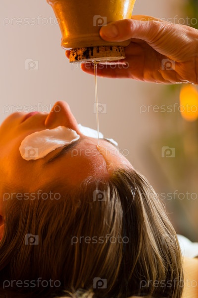 Женщина наслаждается аюрведическим массажем в спа-салоне