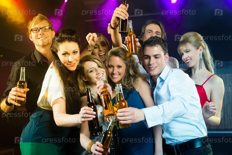 Молодые люди в клубе или баре пьют пиво