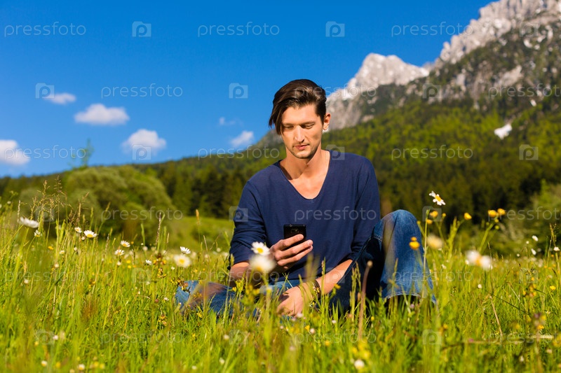 Человек с телефоном в горах